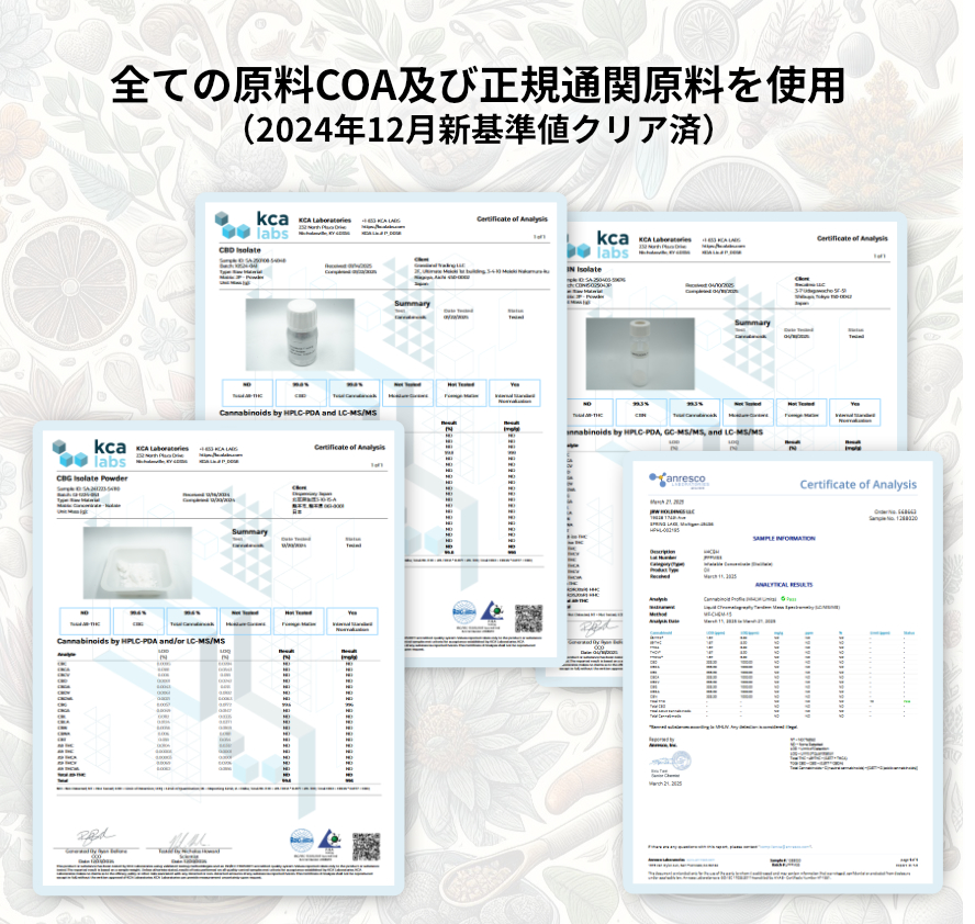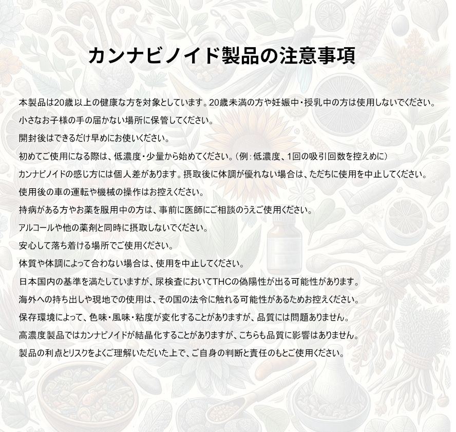 ◾︎PG、VG、PEG、THC、MCTオイル、ニコチンなど違法成分は含まれておりません
